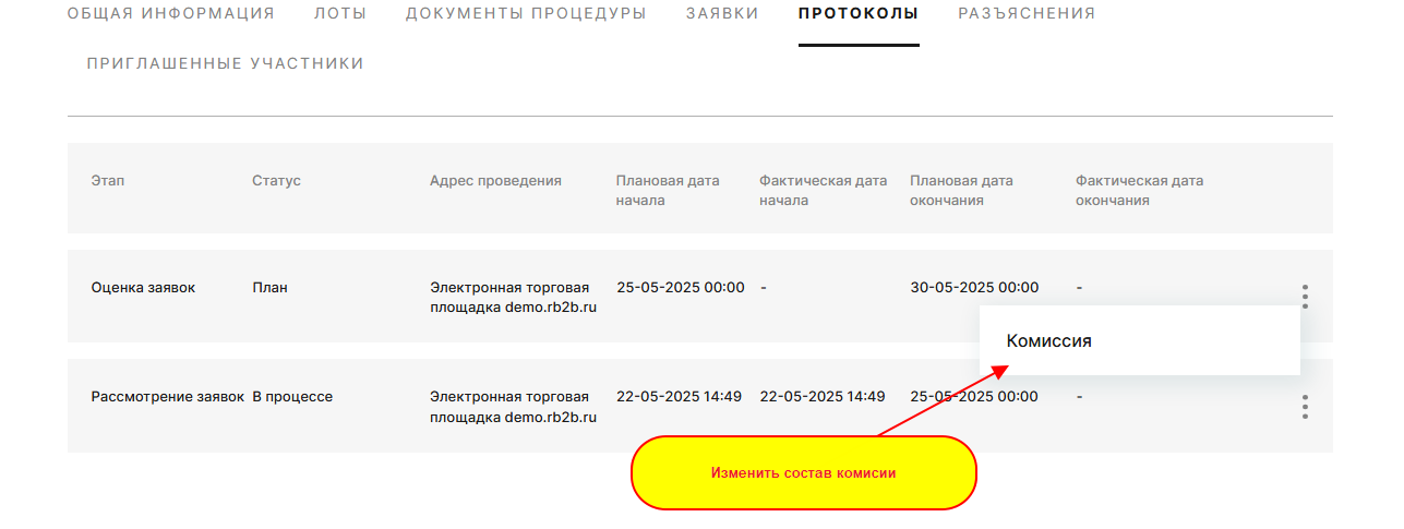 При необходимости можно изменить состав комиссии в протоколе :